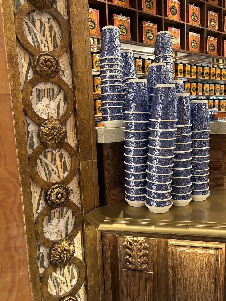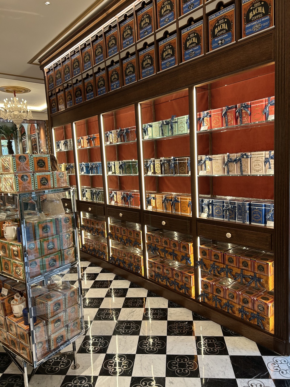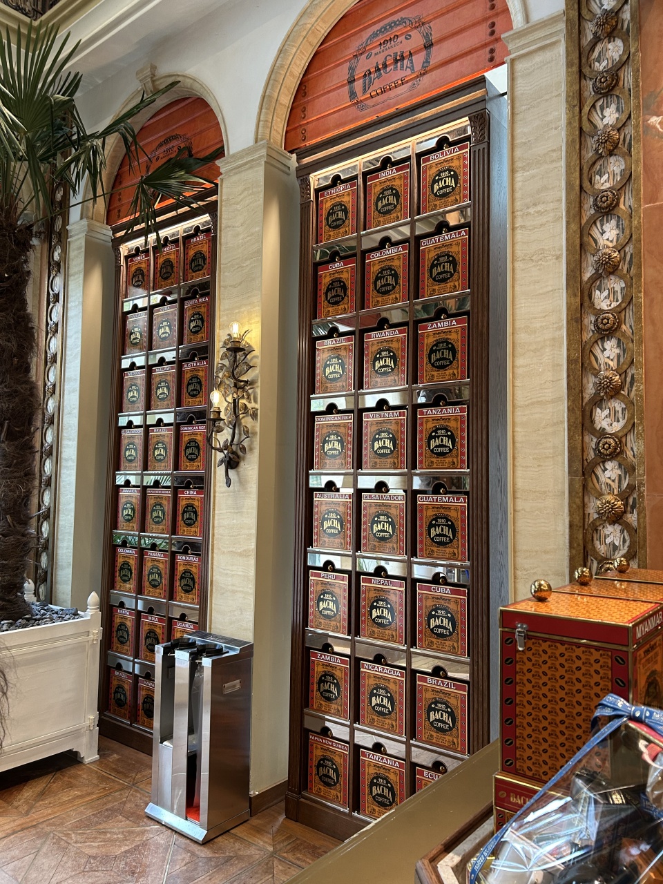 Zwischen Marmorsäulen, Messingkannen und goldverzierten Regalen wird Kaffee bei Bacha Coffee nicht nur verkauft, sondern regelrecht zelebriert.